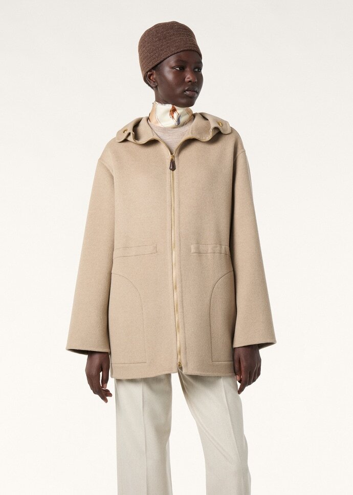 In exclusive baby cashmere with a sumptuous feel, the Kevin coat is primed to elevate cold-weather dressing. Unlined for lightness, the double-layered construction lends itself perfectly to this structured dropped-shoulder silhouette, complemented by a hood with folded peaks at the neck. Side-entry pockets, gently framed with tonal stitching, provide a discerning finishing accent.