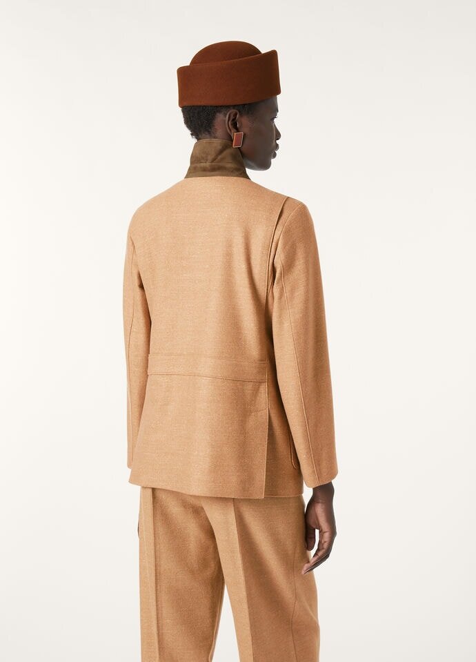 Modelled on the men’s version, with influences drawn from the world of classic cars, the Roadster Mini is the ultimate driving jacket, and is revisited here for a relaxed, feminine line. Versatile, lightweight, and wind-resistant, this rendition is crafted from light Melton Cash Wool, a harmonious blend of soft wool and delicate cashmere with touches of linen that lend a light finish. The resulting cloth is worked for a distinctive felted look: a modern interpretation of linen exclusive to the Maison.