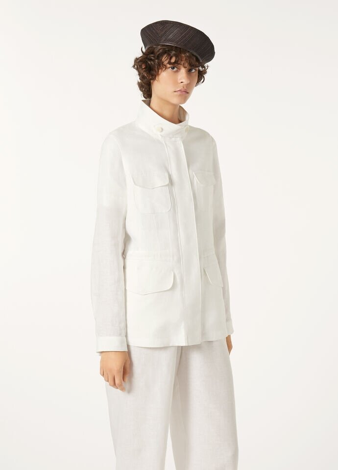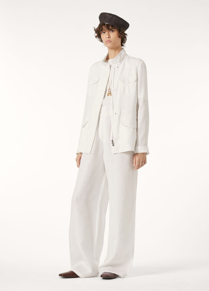 A versatile jacket that is a feminine take on the Traveller, Loro Piana’s iconic men’s jacket designed for travel. Crafted from linen, it is hip length with a straight cut and waist drawstring. Perfect with casual looks, slipped over a t-shirt and shorts, cotton trousers or jeans.