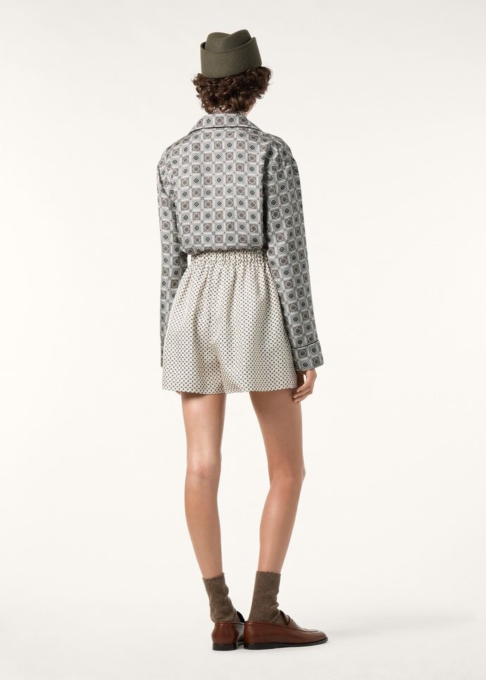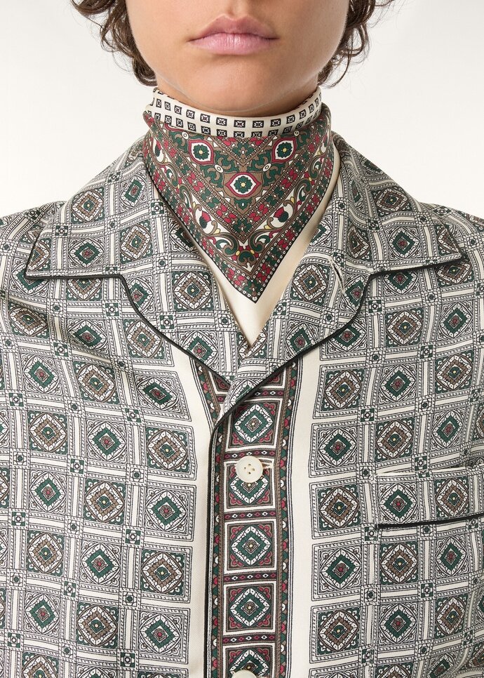 Inspired by the sophistication of the 1920s, the Lian shirt is defined by its wide-faced collar modeled on the iconic André shirt. It is crafted from fluid silk twill and is emblazoned with the Loro Piana Mendoza Border print, an homage to the same-named city in Argentina. Versatile and classic, it is ideally suited for at-home dressing and pairing with casual ensembles alike.