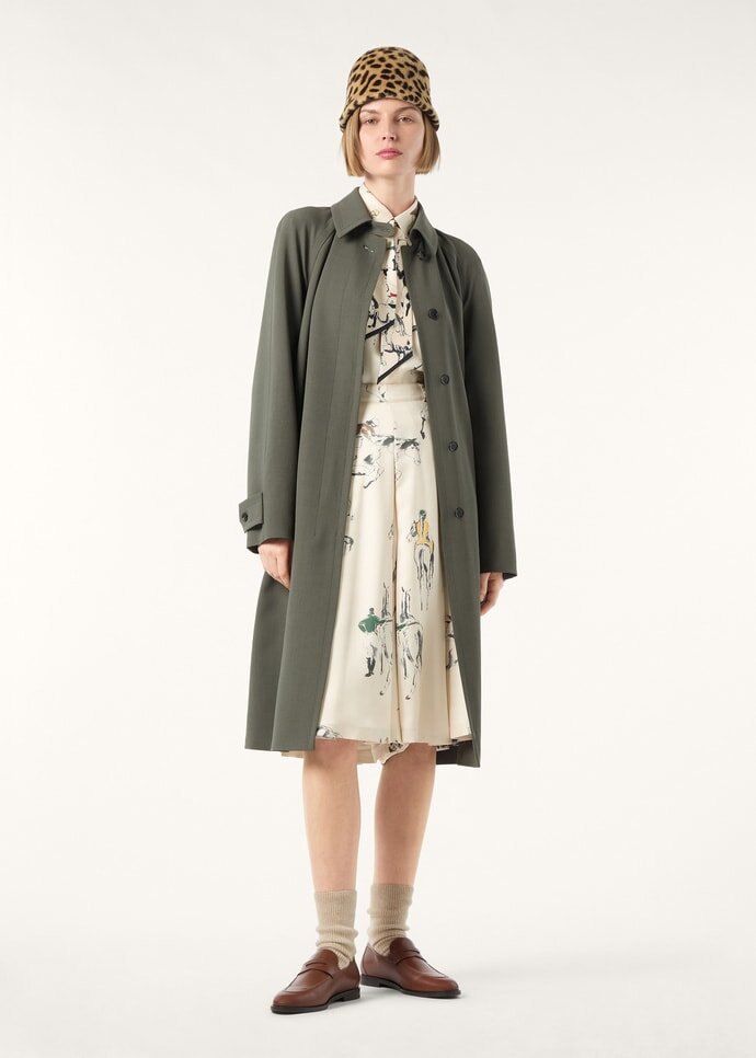 Brimming with classic tailoring cues, the Thea shirt is a refined wardrobe essential. It is woven from pure silk and decked with the Loro Piana Scuderia print, picturing vignettes from the world of horse riding. The straight profile falls neatly to the hip, framed by a square collar and traditionally finished cuffs that lend the piece discreet definition.