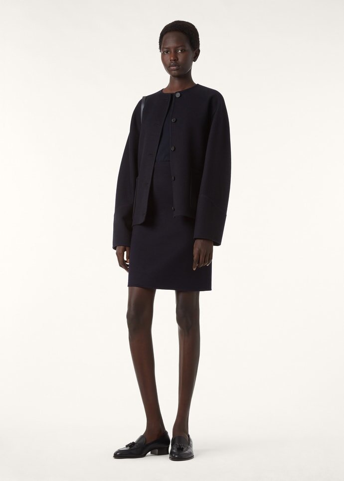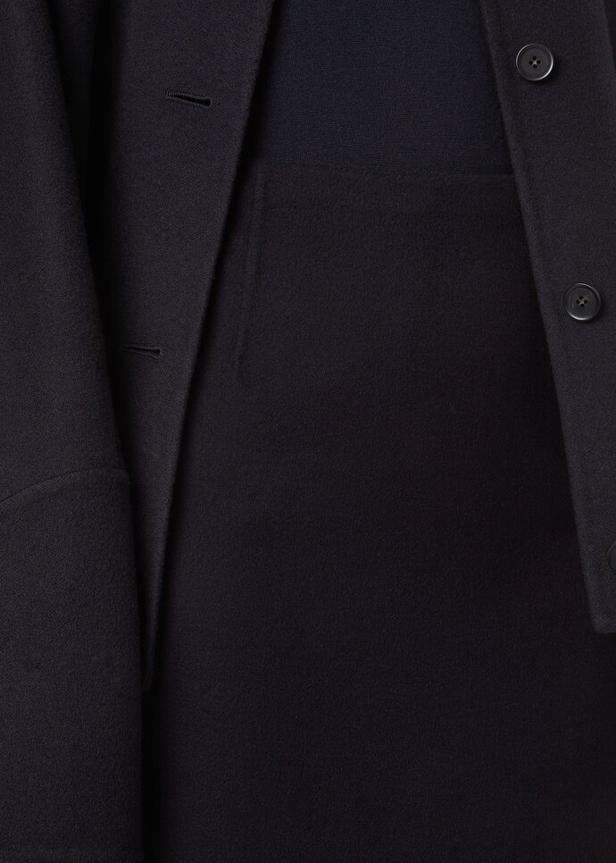 The Vivian skirt dances with the soft textures of the transitional season, where fluid silhouettes embrace the delicate beauty of warming days. Double-layered cashmere transforms the classic tube skirt into a haven of refinement, while the A-line cut and back slit ensure graceful movement. The above-the-knee length creates the perfect proportion for high boots and delicate heels.