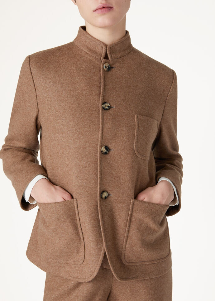 A symphony of nature unfolds with this contemporary interpretation of the Spagna sweater jacket, defined by an upright collar and traditional tailoring. Almost entirely unlined, it is beautifully crafted from double cashmere Jersey Novalis, our iconic lightweight yet warm, naturally stretchy fabric. Embodying Loro Piana’s commitment to unparalleled textile quality, it gently embraces the wearer. With its much more fitted line, it transcends the seasons with timeless elegance.