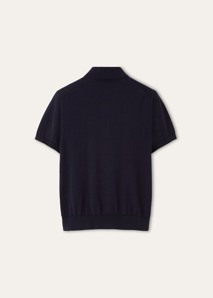 A sophisticated summer garment, this short-sleeved polo shirt is crafted in Ice Wish™ using extra-fine Sea Island cotton for a smooth, refreshing hand and elegant finesse. In a classic regular fit, it is traced with rib-knit detailing at the hem, cuffs, and neckline, and finished with a placket featuring subtly shimmering mother-of-pearl buttons.