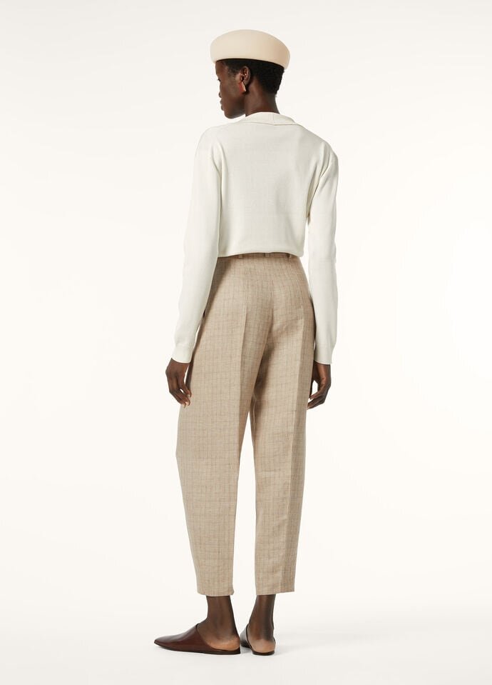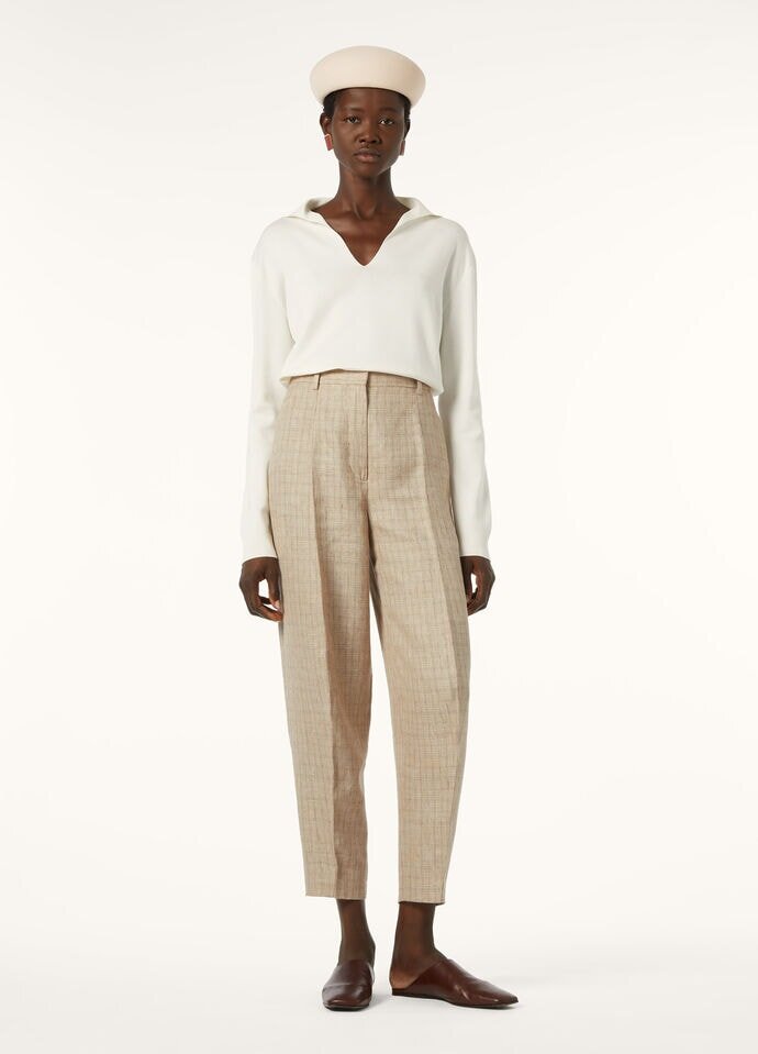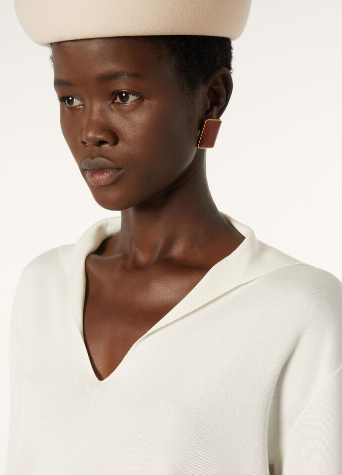 Long-sleeved polo shirt made from cotton and silk. Its minimalist cut and details are enhanced by a classic polo shirt collar with a plunging, buttonless opening, creating a versatile, feminine allure.