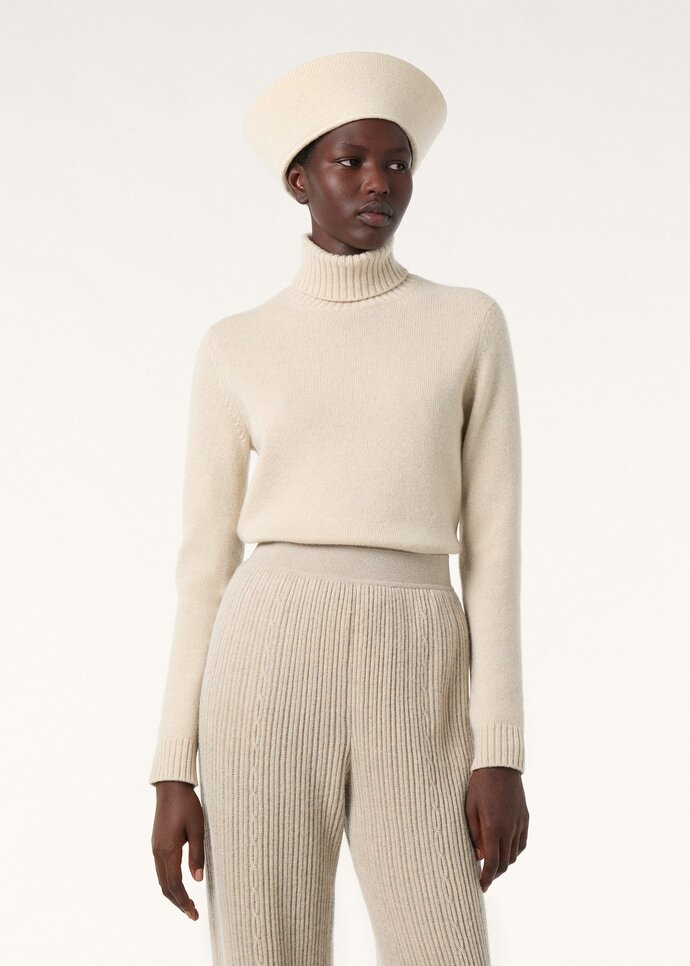 The Parksville turtleneck reinterprets a women’s must-have wardrobe staple with a luxury allure. This fluffy, gossamer, lightweight style is made from delicate, fine baby cashmere fibers that are transformed using specific, meticulous techniques. It doesn’t weight down the figure, thanks to an extremely comfortable, flowing, regular fit.