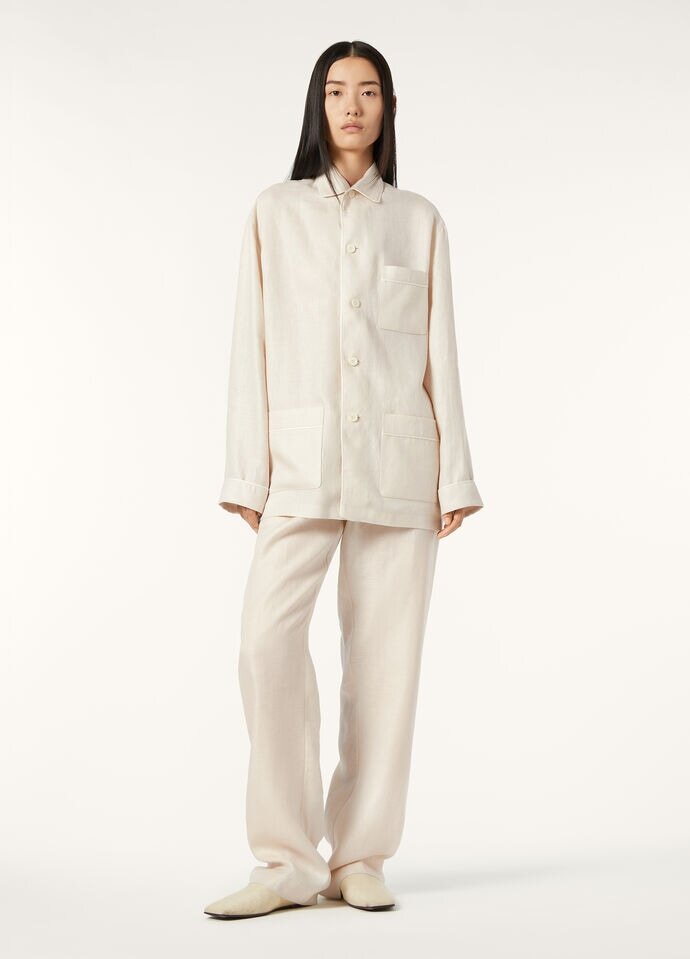 Ideal for sleeping or moments of relaxation, the Britton pajamas pants capture the easy elegance of at-home dressing. Crafted from New Twill Summer Linen – a lightweight fabric with a delicate hand –, they offer exceptional breathability and a soft, fluid feel that is enhanced by Loro Piana’s signature aloe vera finish. The clean, ample cut flows effortlessly, with elasticated hips ensuring a comfortable fit.