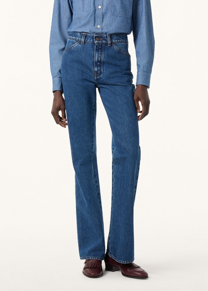 With their gently flared silhouette, these Merak pants are cut from Denim Silk, a blend of cotton and silk with a brushed inner for added comfort. The stone-washed finish lends a sun-faded look that balances the fabric’s slight sheen. The five-pocket design sits close to the body and fastens with a polished copper button as a nod to its subtle retro spirit.