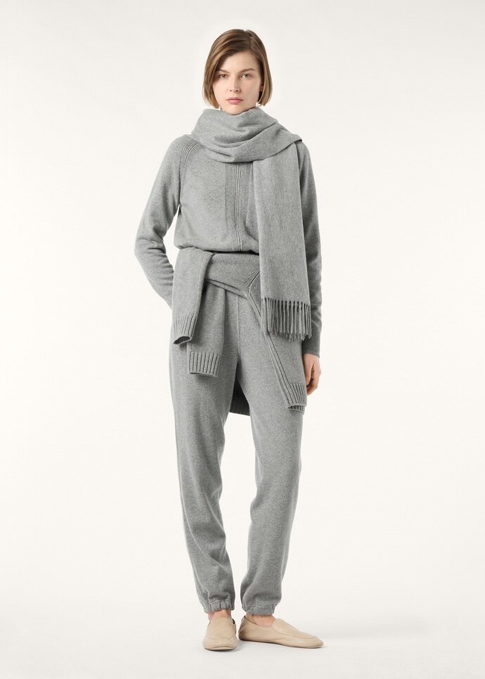 Light-weight, relaxed cut trouser in knitted baby cashmere, in a very compact plain knit. Warm and supremely comfortable, with drawstring waist and elastic cuffs. Team with one of the Merano sweaters in baby cashmere to create the ultimate loungewear for relaxing at the spa or après ski.