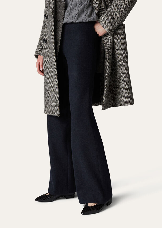 The quiet, natural elegance of the immense New Zealand landscape is embodied in a collection featuring enveloping, flowing silhouettes and a tailored allure. Crafted from exceptionally lightweight and soft Jersey Novalis double cashmere, a naturally stretchy fabric, every piece delicately embraces the wearer. The Robin pants are defined by a straight cut. Their double-faced classic construction enhances the luxury cashmere fibers. When worn with the matching Ayla jacket, the result is a comfortable, formal look.