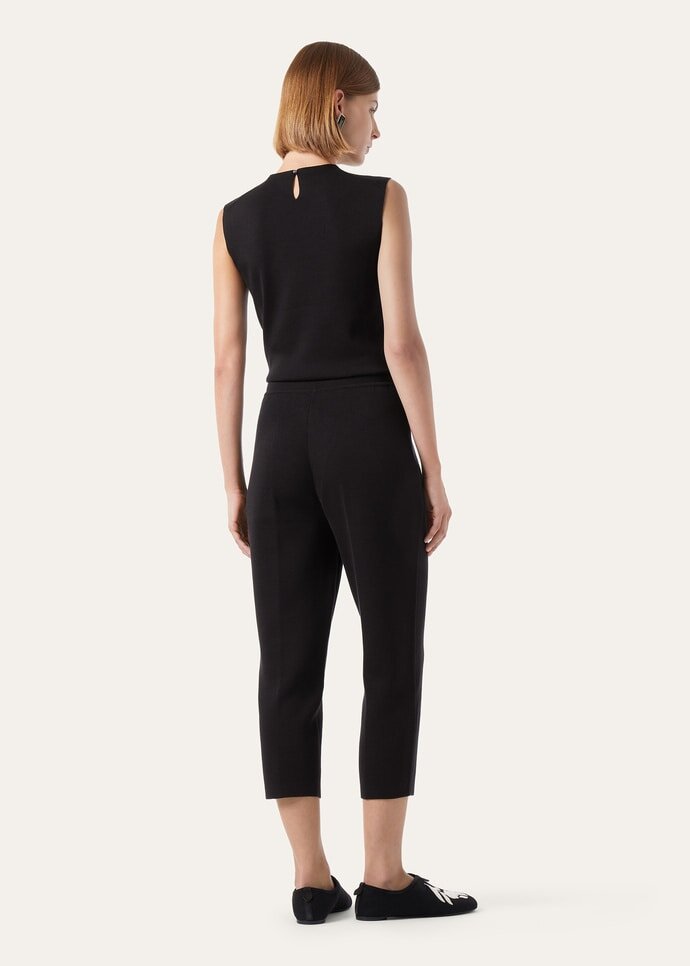 The Siena pants are designed with nods to classic pedal pushers. Complete with a tapered hem, the pair comes in a regular fit and is traced with a tubular detail just below the rib-knit waistband, and features gently structured pleats through the front. The yarn combines the luster and elegance of silk with the softness and moisture-absorbing qualities of cotton – ideally suited for the warmer months.