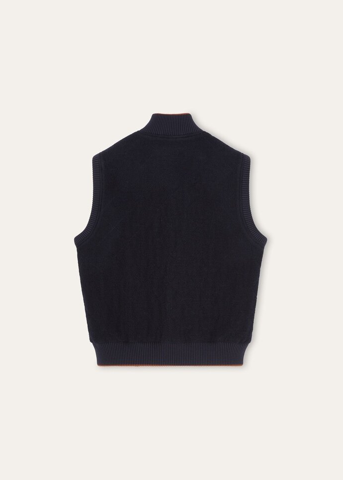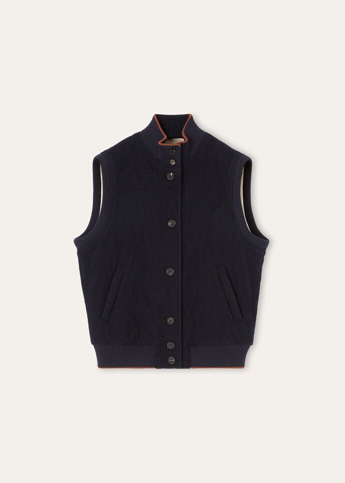 Versatile and easy to style, the Carry vest from the Road to Golf Capsule is the ultimate essential for golfing enthusiasts. Imagined in tactile Jersey Wool Bouclé, it has a soft, enveloping hand and diamond-quilted body for gentle structure. It is trimmed with knitted Wish® Wool along the collar, shoulder, and hem to help lock in warmth.