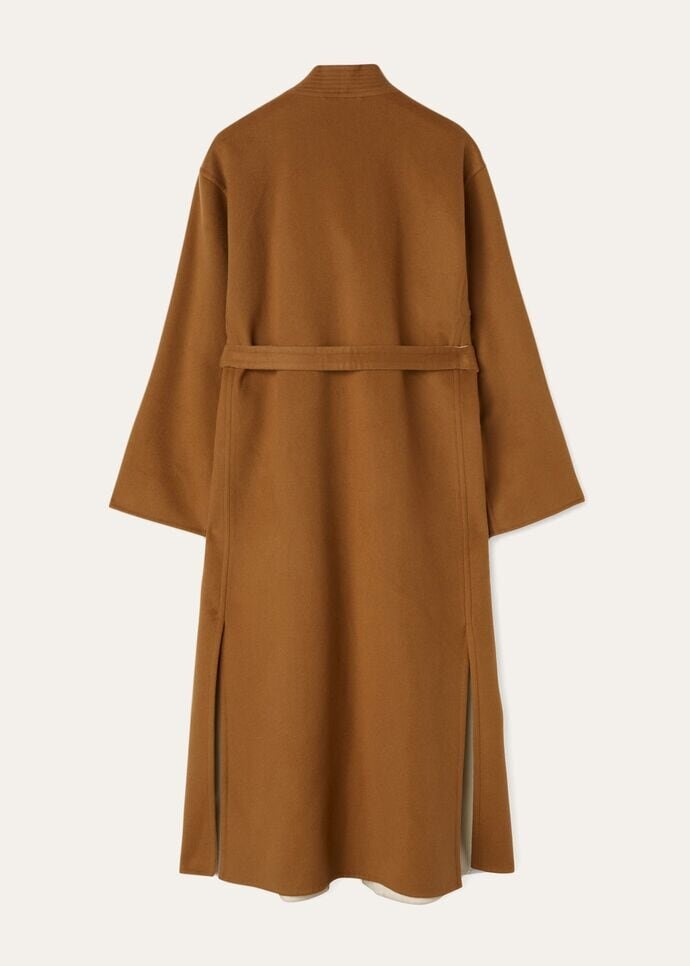 Layered outerwear and contrasting fabrics inspired by the vast Mongolian landscape define a selection that is pleasant to the touch and perfectly designed to provide maximum comfort on the coldest days of the year. The highly comfortable, long Gerry Coat features a cozy, feminine silhouette and sophisticated details. Its luxurious, double-faced fabric is crafted from natural baby cashmere and vicuña fibers, making it extremely warm and lightweight — perfect for layering with pullovers and turtlenecks.