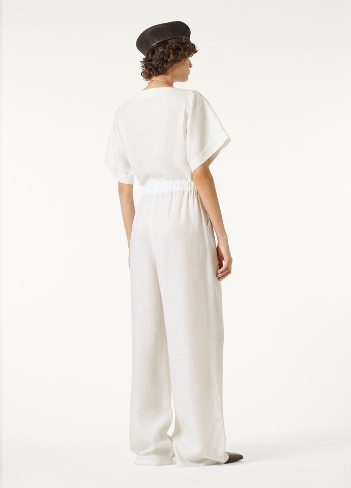 Shaped with a fluid wide-leg silhouette, the Valerio pants bring an air of relaxed sophistication. Their Solaire linen fabric – a signature material of the Maison’s, treated with aloe vera for added softness – feels welcomingly cooling to the touch. The white shade captures the ease and lightness of balmy summer days.