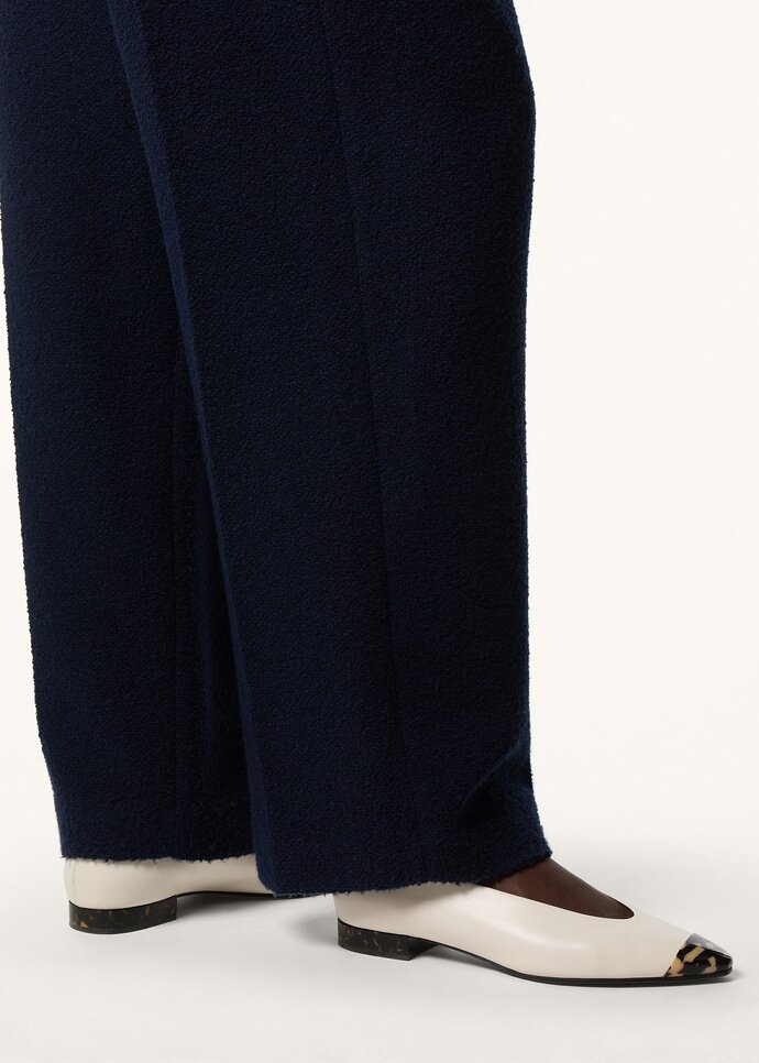 The ideal accent to the silhouette, the Rebecca ballet flats are elegant in shape and fabrication. Complete with a gently rounded tapered toe, they have an elongated profile. The pair is tipped with a contrasting toe and heel in Luxury Calf, worked for a sophisticated marbled effect.
