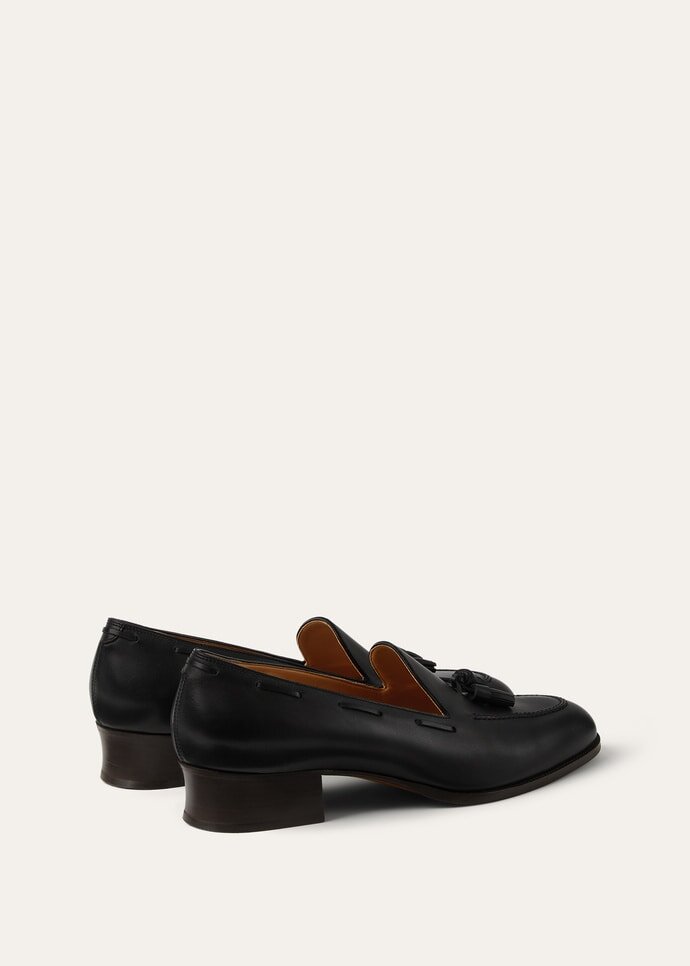 A timeless interpretation of a classic design, the Serge Tassel loafer is characterized by its tapered line and matching leather tassel. It comes in Box Prestige Calfskin, noted for its natural luster and firm structure that refines the sculpted form. The discreetly heeled silhouette reveals a meticulously woven instep, in a refined showcase of the Maison’s artistry.