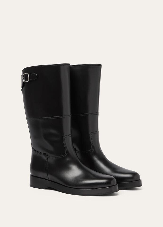 The Lupo boots are meticulously crafted from fine calfskin that has been treated with a natural wax finish for a lustrous sheen and crisp, subtly irregular texture. The low bootleg is finished with an adjustable buckle strap, reminiscent of an elegant belt, while the round toe and stitched panels showcase fine craftsmanship. A timeless silhouette.