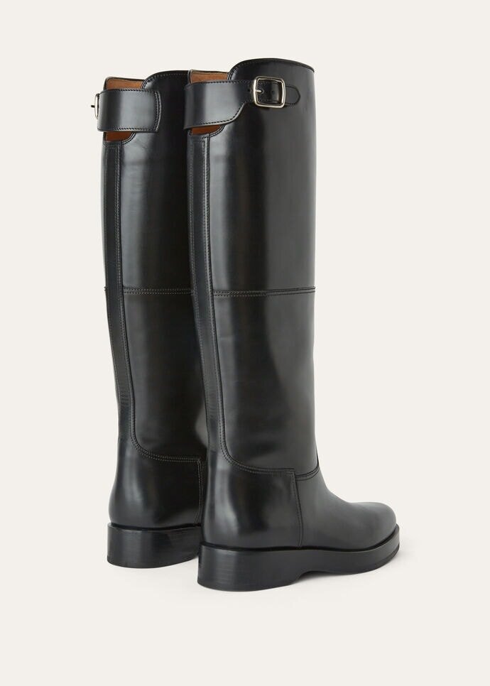 The Lupo high boots are meticulously crafted from fine calfskin that has been treated with a natural wax finish for a lustrous sheen and crisp, subtly irregular texture. The high silhouette is finished with an adjustable buckle strap, reminiscent of an elegant belt, while the round toe and stitched panels showcase fine craftsmanship. A timeless pair.