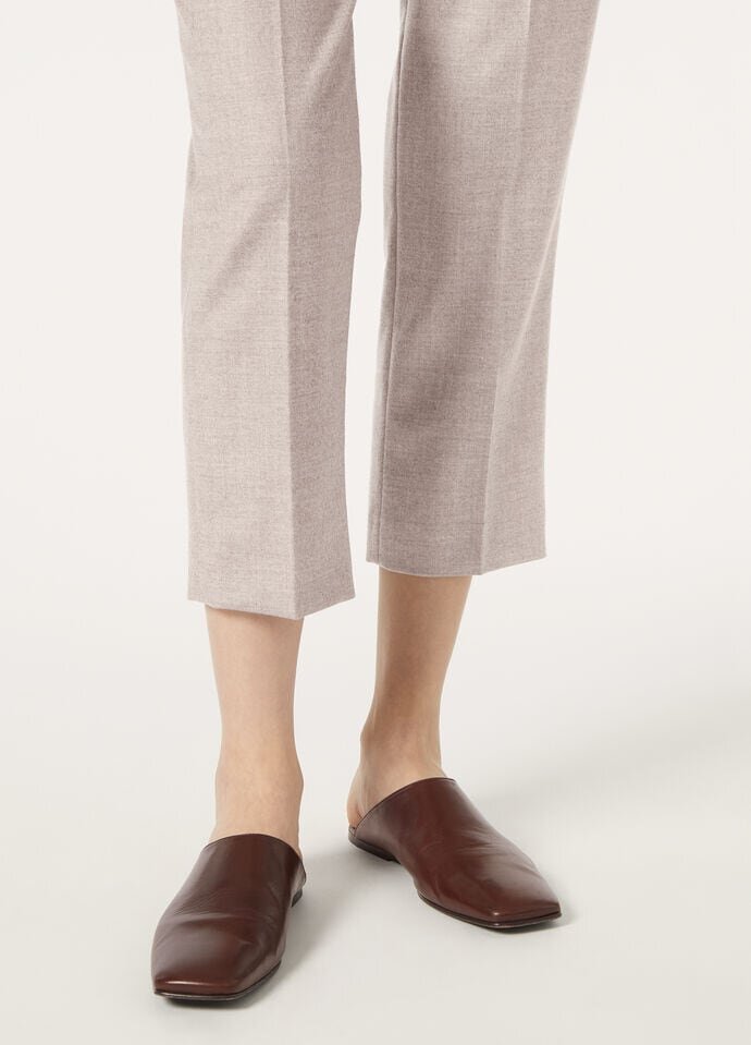 Refined mules with understated lines, high instep and square toe exude polished sophistication in soft waxed lambskin leather. The leather is exceptionally soft and delicate, with a small grain and semi-gloss finish. Their minimalist silhouette complements tailored ensembles as well as weekend casual looks.