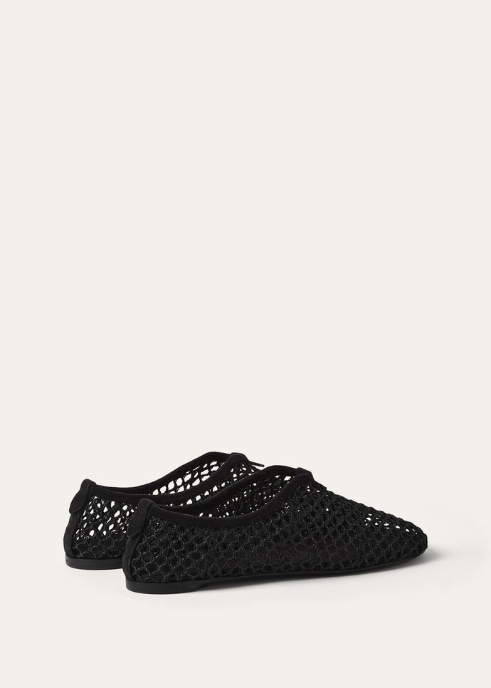 A refined slipper style, the Floaty flat loafer offers an unstructured fit that remains comfortable throughout the day. It is crafted from technical lurex mesh for a high-performance look and feel. The lightly padded insole enhances comfort underfoot, while the piped suede edges on the outer add thoughtful detail to the minimalist design.