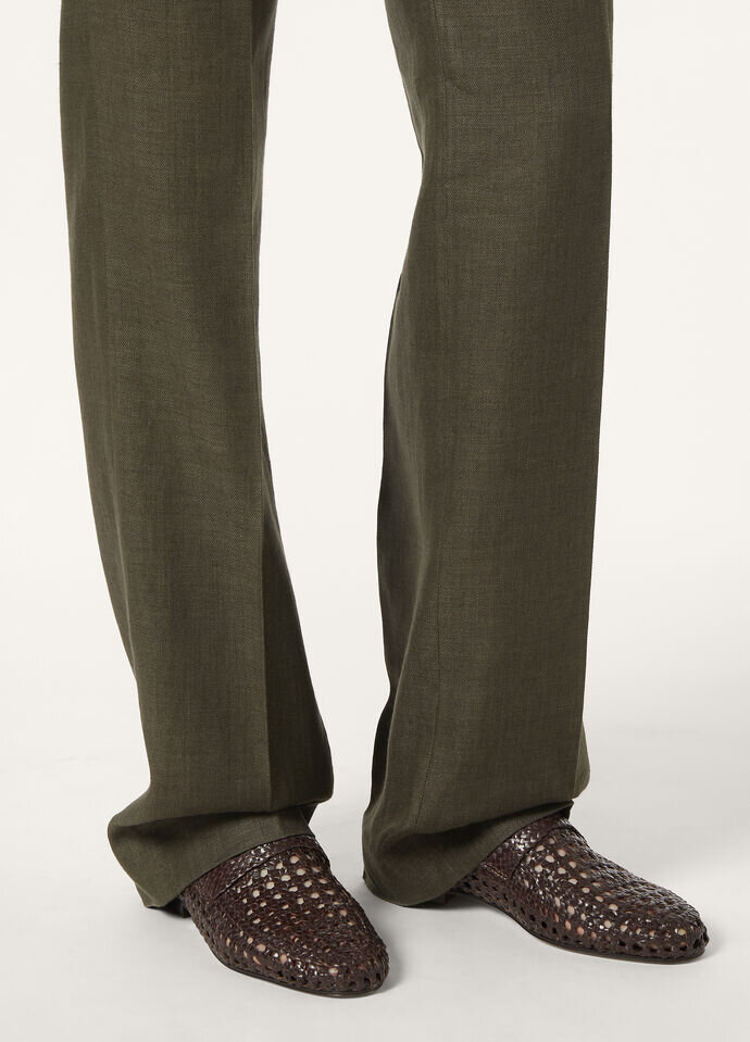With cues taken from the iconic Summer Charm model, yet with a refined leather sole, the Leon loafers are a quintessential choice for the warmer seasons. They are hand-crafted in a half sacchetto construction for enhanced comfort—each version defined by minute alterations due to the artisanal nature of the workmanship. The uppers are reminiscent of a basket weave and cast an elegant open design.