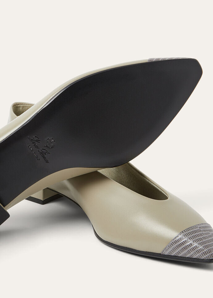 A sophisticated evolution of the Rebecca ballet flat, this version in sumptuous calfskin is detailed with a distinctive pointed toe in supple lizard skin. The feminine silhouette enhances the appeal of this exquisite design. Any wardrobe will benefit from this timeless addition.