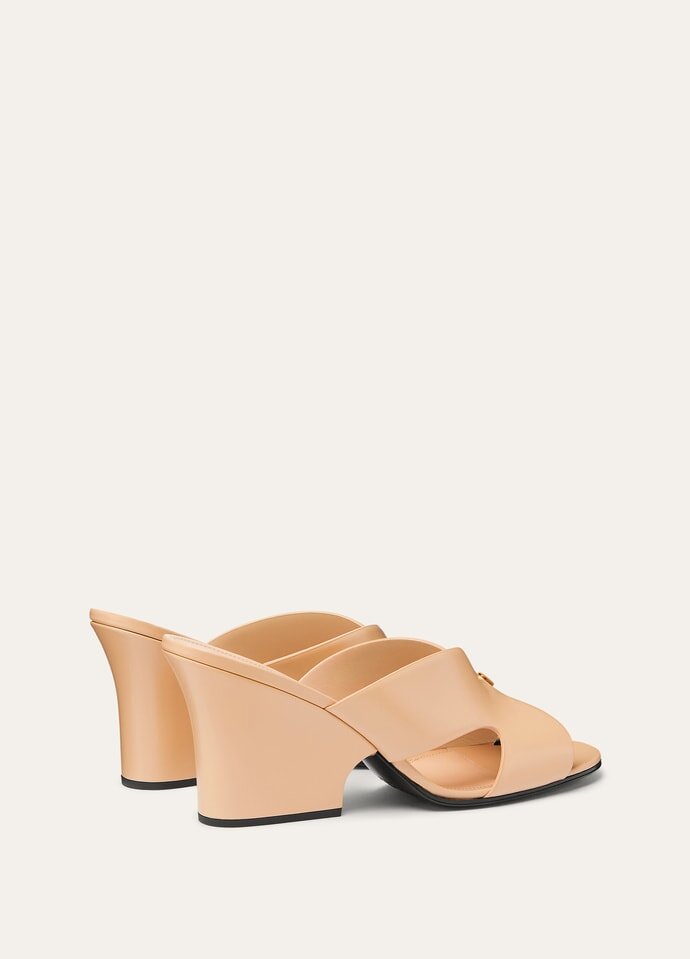 Set atop a distinctive wedge heel, the Vera sandal is primed to imbue any ensemble with feminine elegance. It is traced with wide straps that gracefully meet at the center and are accented with gilded hardware. The Glazed Calf leather has a lightly grained texture and glossy look – exuding an air of timeless sophistication.