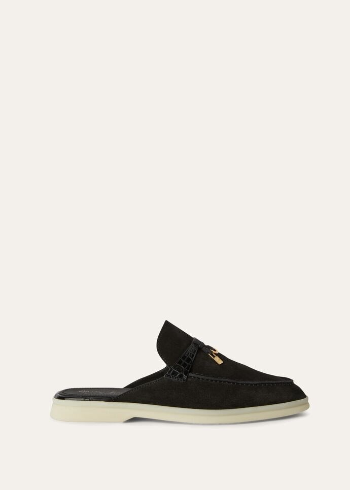Slipper version of Loro Piana’s Summer Walk loafers. These white-soled, suede slip-on loafers combine optimal performance with elegant esthetics. For the Fall/Winter season, they are available in a flexible, lightweight loafer version featuring luxury alligator-skin details with a naturally lush and lustrous finish. The leather’s three-dimensional texture is the result of a meticulous selection process and the finest artisanal craftsmanship, creating a slightly vintage allure. Thanks to a sophisticated design, they are perfect in daily looks and comfortable leisure-time outfits.