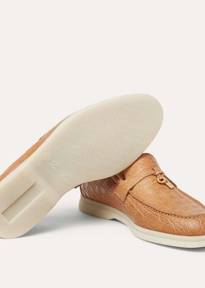 Exclusive, luxury version of the classic Summer Charms loafer made from crocodile skin with leather lining. The leather is entirely cut and sewn by hand to obtain a perfect finish. A one-of-a-kind shoe designed for a discerning clientele.