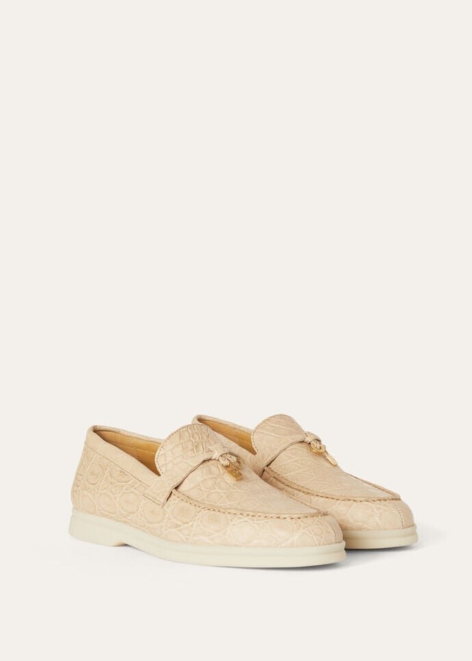 Exclusive, luxury version of the classic Summer Charms loafer made from crocodile skin with leather lining. The leather is entirely cut and sewn by hand to obtain a perfect finish. A one-of-a-kind shoe designed for a discerning clientele.